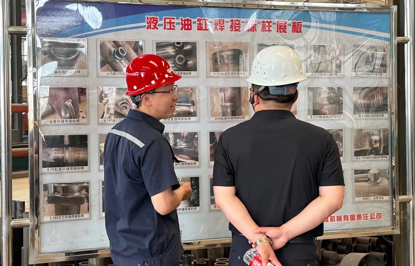 在觀摩過程中,一車間主任孫雷為客戶介紹液壓油缸的整個(gè)生產(chǎn)過程:從焊接工藝、清洗工藝到裝配工藝,有序的生產(chǎn)流程、嚴(yán)格的質(zhì)量控制,讓客戶留下了深刻的印象。