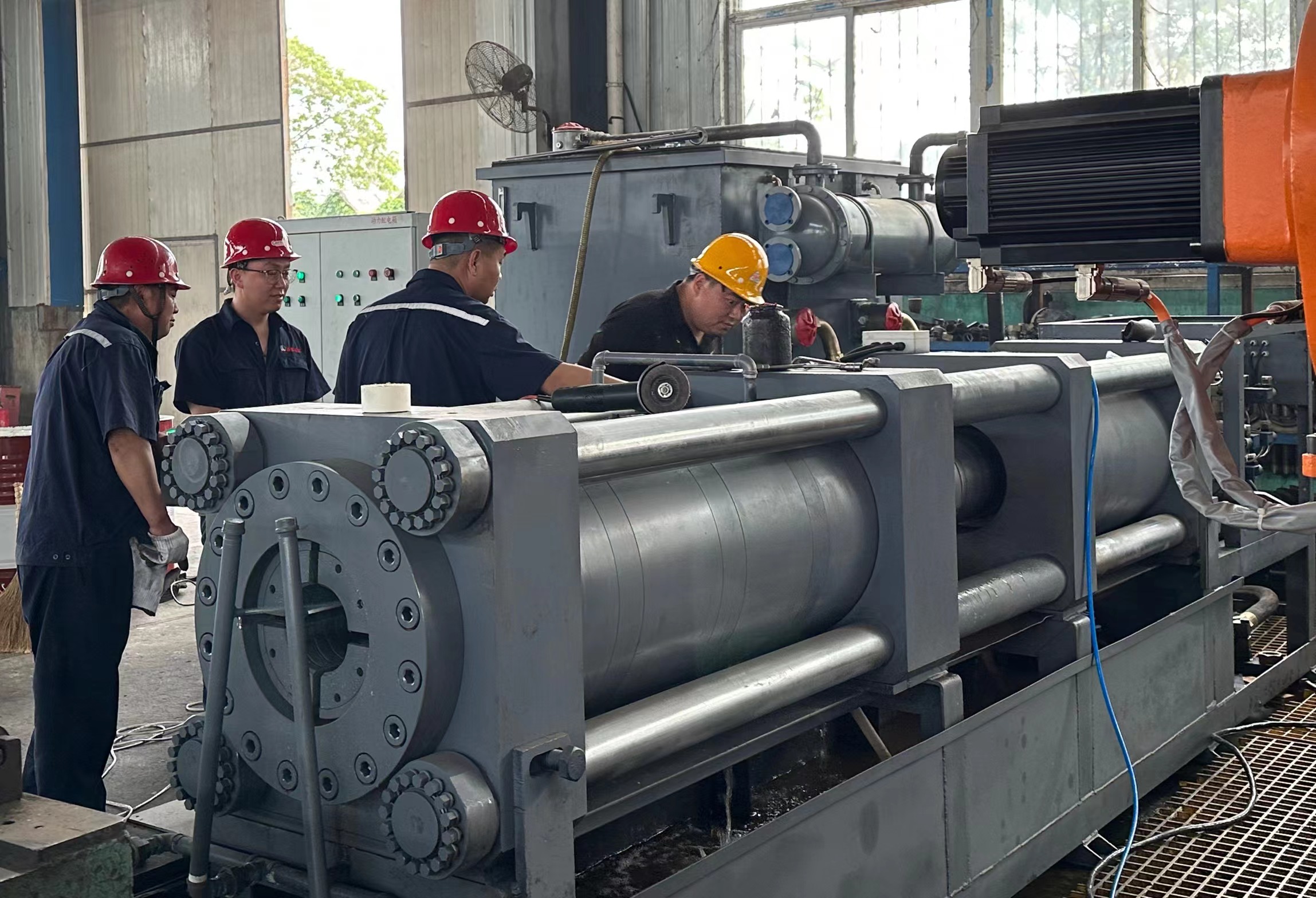 裕隆公司總經(jīng)理李剛、地質(zhì)裝備工藝研究所副所長唐宇恒、銷售二部主任姬忠輝陪同客戶參觀了生產(chǎn)車間,并且就公司主要產(chǎn)品進(jìn)行詳細(xì)的介紹,隨后重點(diǎn)觀摩了液壓油缸生產(chǎn)線和 YDG全液壓鐓管機(jī)系列產(chǎn)品。
